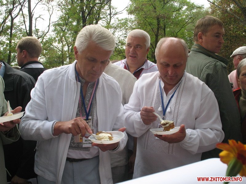 Владимир Литвин признался, что во время дегустации, которая сопровождалась традиционными тостами, он пил не спиртное, а минеральную воду, иначе, не выдержал бы, поскольку пришлось обойти не один десяток столов, где хлебосольные хозяйки угощали спикера дерунами, приготовленными по оригинальным рецептам.
