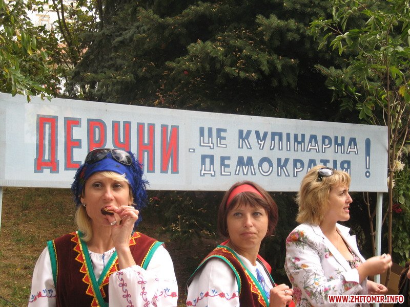Владимир Литвин признался, что во время дегустации, которая сопровождалась традиционными тостами, он пил не спиртное, а минеральную воду, иначе, не выдержал бы, поскольку пришлось обойти не один десяток столов, где хлебосольные хозяйки угощали спикера дерунами, приготовленными по оригинальным рецептам.