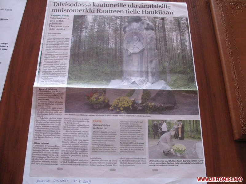 Житомирская область установила мемориал в память о погибших в Финляндии жителях области во время «зимней воны» 1939 года.