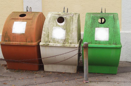 Для стекла установят контейнеры зеленого цвета, для пластика - желтого цвета. Обе емкости стандартного размера, закрытого типа с отверстиями, предназначенными исключительно для приема бутылок.