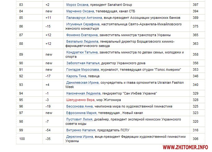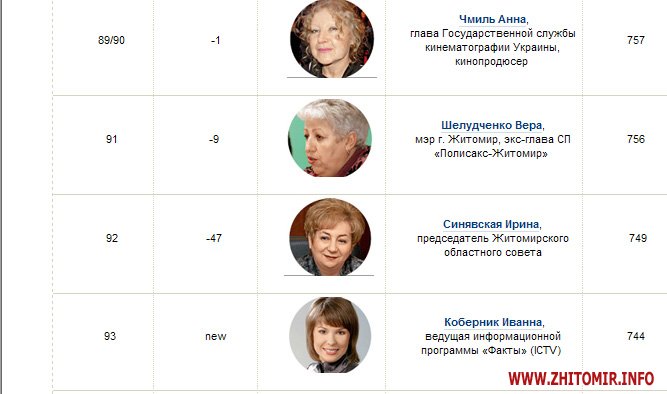 Кстати, с потерей должности председателя Житомирского облсовета еще одна известная житомирянка – Ирина Синявская перестала фигурировать в рейтинге.