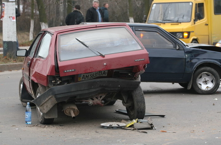 В Житомире по дороге на микрорайон Корбутовка, на улице Черняховского толкнулись два легковых автомобиля «Лада», при этом зацепив маршрутку. Случилось это пополудни, в ста метрах от Житомирского технологического университета.
