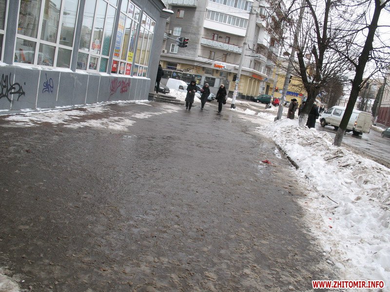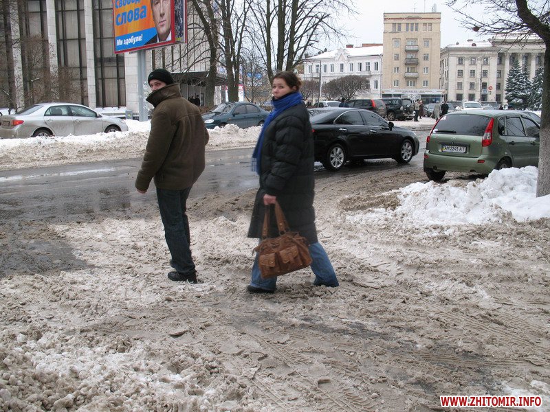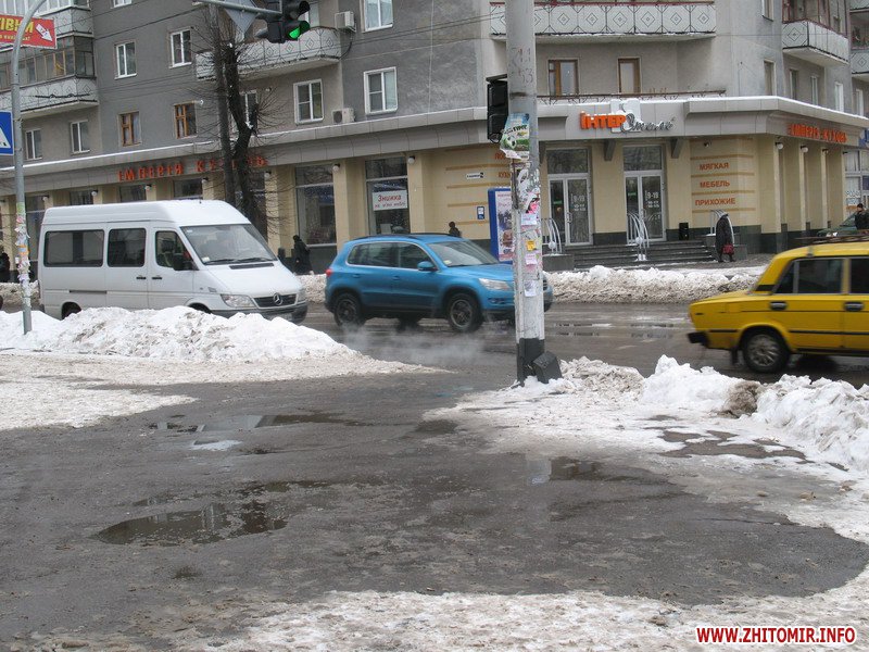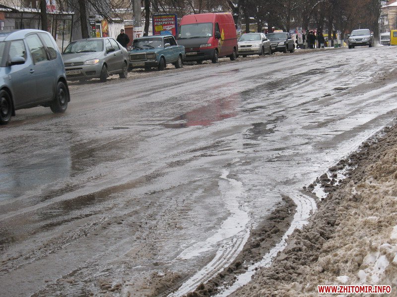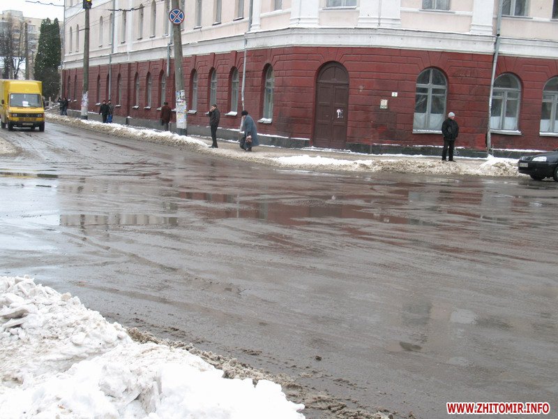 В Житомире после продолжительных морозов, как и обещали синоптики, наступила оттепель. Первыми оттаяли тротуары, которые во время снегопадов чистили добросовестные дворники, или же сами сотрудники магазинов, банков и офисов Солнца не видно, небо серое, а под ногами – лужи. А после обеда начался дождь…
