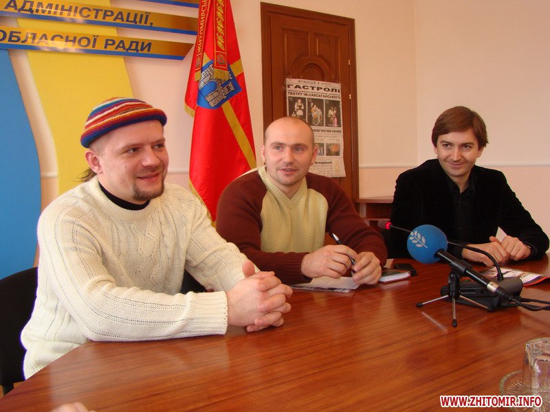 16 февраля в Житомире состоялась пресс-конференция заместителя директора Киевского драмтеатра Александра Моронова и двух режиссеров театра - Тараса Мазура («Поминальная молитва» и «№13») и Вячеслава Стасенко («Третье слово» и «Пизанская башня»).