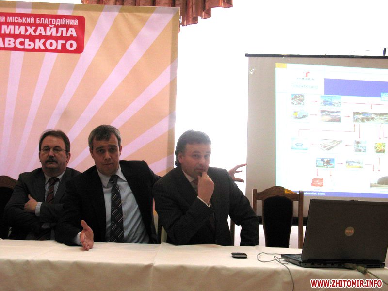 В этот же день состоялась пресс-конференция представителей голландского бизнеса и руководителей Житомирского городского благотворительного фонда Михаила Заславского, который стал инициатором такого сотрудничества. На встрече с журналистами присутствовали Яап Терлоу – генеральный директор компании, Бас Дийкман – инвестиционный директор, советники голландских бизнесменов – Олег Паланский, Олег Иванец, председатель правления Житомирского городского благотворительного фонда Михаила Заславского - Эдуард Кругляк.