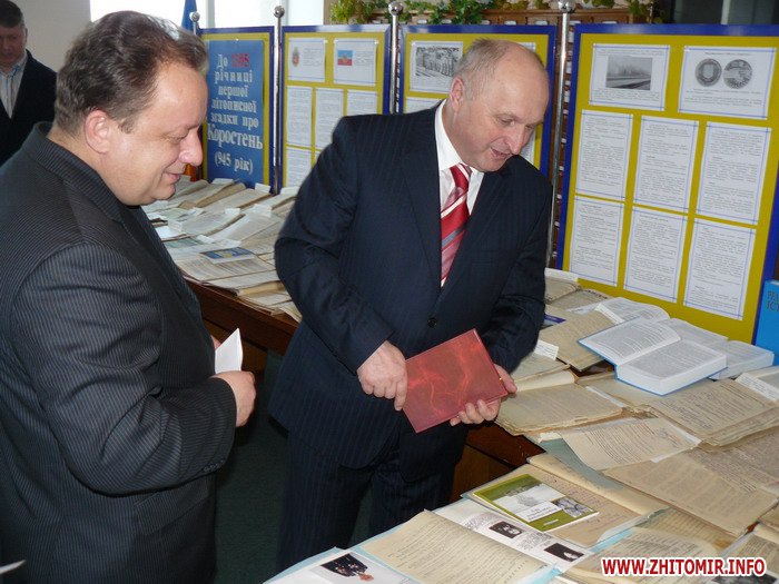 На фото: Начальник Житомирского областного архива Игорь Рафальский и мэр Коростеня Владимир Москаленко