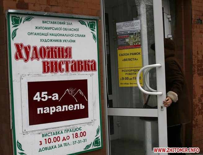 У художньому салоні Житомирської обласної спілки художників України (вул. Театральна 8) розміщена художня виставка картин, яка носить назву „45 паралель” та присвячена 21-річниці виводу радянських військ з Афганістану.