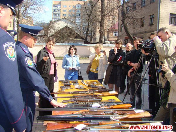 8 квітня в УМВС України в Житомирській області працівники управління громадської безпеки наочно показали журналістам центральних та обласних засобів масової інформації зброю та боєприпаси, що надійшли від людей упродовж останнього місячника, який тривав упродовж березня 2010 року.