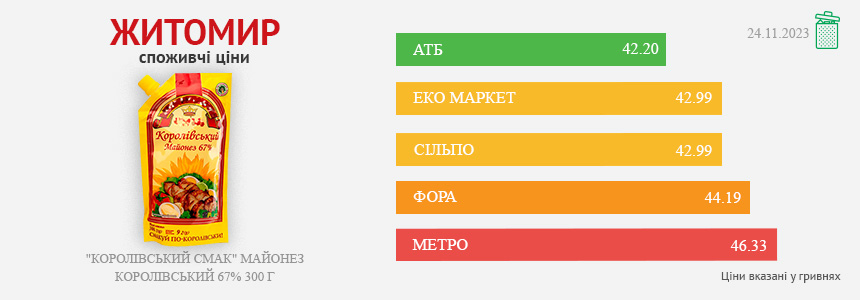 Моніторинг здійснено на основі інформації, отриманої за методом контрольної закупки 19.12.2025 р. у місцях продажу:АТБ, пр. Миру, 15а, Фора, вул. Київська, 106, Метро, вул. Ватутіна, 55в, Сільпо, вул. Житній ринок, 1