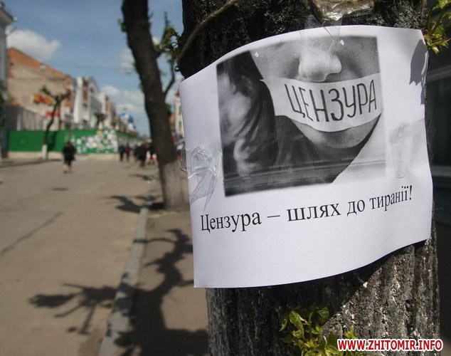 В Житомире пополудни 21 мая несколько молодых людей, заметим, весьма далеких от журналистики, (многие узнали в них «осколки» бывшей житомирской «Свободы», отошедшей от активной политборьбы вместе с её экс-руководителем Русланом Коцюбинским) устроили, анонсированную накануне акцию «Цезуре – нет!».