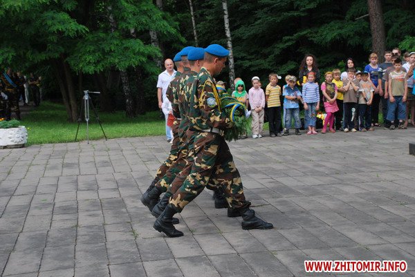 22 июня 1941 года в 4 часа без объявления войны город Житомир был подвергнут бомбардировке. После захвата города начались черные дни оккупации. В братских могилах здесь похоронено 45 тысяч мирных жителей, 65 тысяч военнопленных. За период временной оккупации Житомира фашисты уничтожили почти все промышленные предприятия, разрушили культурно-бытовые, учебные учреждения, больницы, сотни жилых домов, памятники. Житомиряне достойно увековечили память о погибших.