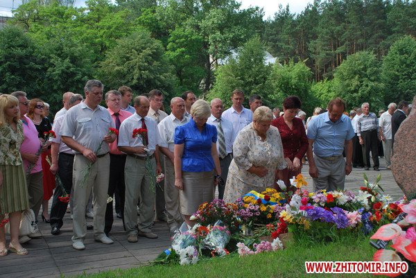 Жители города и представители житомирской власти: губернатор области Сергей Рыжук, председатель областного совета Виталий Француз, мэр города Вера Шелудченко, а также их заместители, почтили память погибших. На Богунии состоялся траурный митинг возле памятника жертвам фашистских концлагерей, где была отслужена молебен по умершим и погибшим в Великой Отечественной войне. Возле памятного знака «Жертвам фашизма», а также в селе Довжик на месте расстрела участников подпольного движения были возложены цветы.