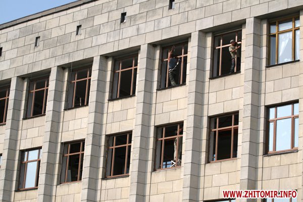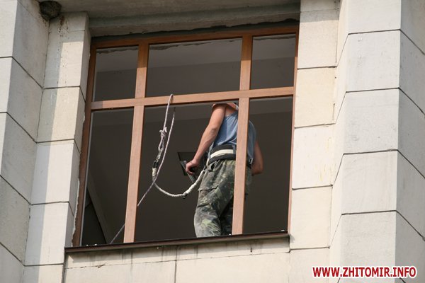 В помещении сессионного зала Житомирского областного совета – ремонт. На 4 и 5 этажах, где расположен сессионный зал, меняют окна.