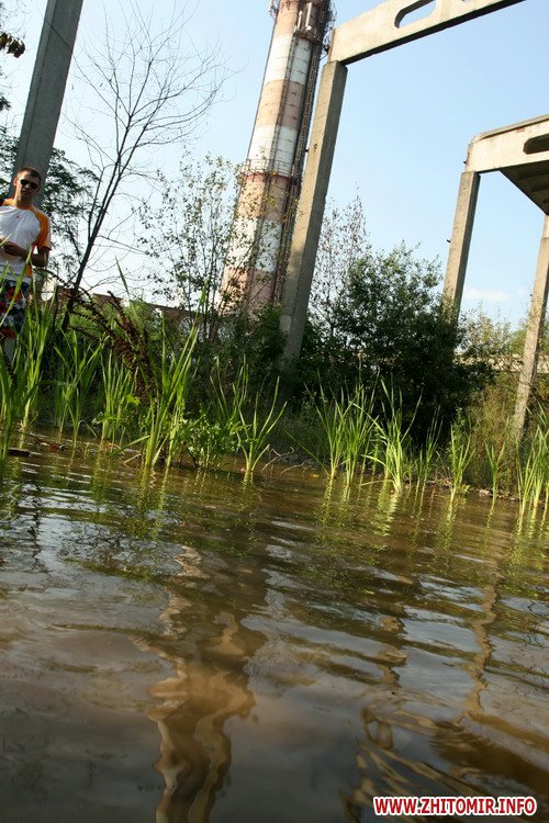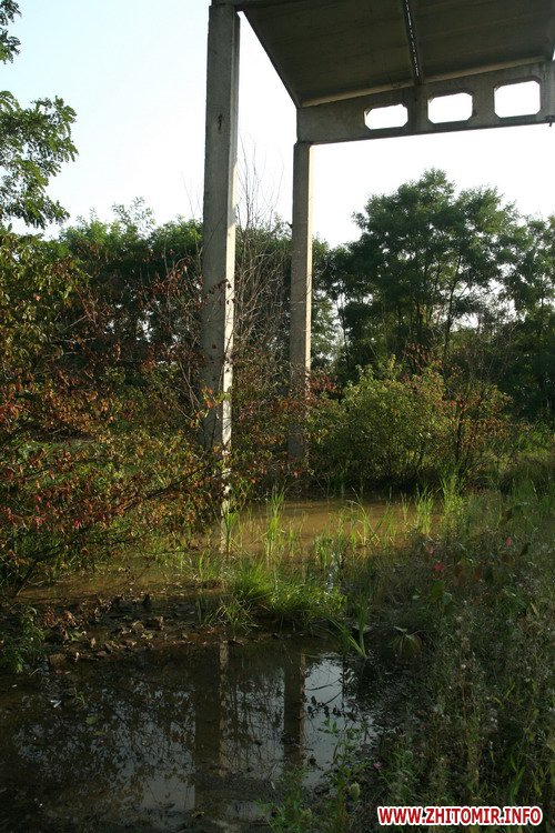 В Житомире в микрорайоне Крошня, за железнодорожным переездом рядом с цехами бывшего завода, «Автозапчасть» из-под земли сотнями кубов вытекает чистая водопроводная вода.