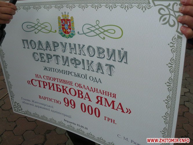 Представники обласної влади привітали учасників змагання та вручив організаторам Сертифікат на спортивне обладнання «Стрибкова яма» (вартість 99 000 тис грн.)