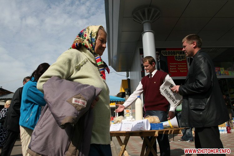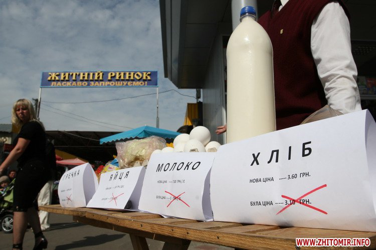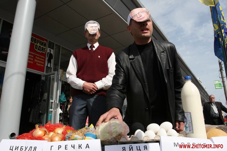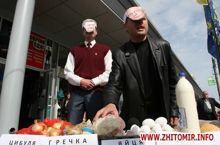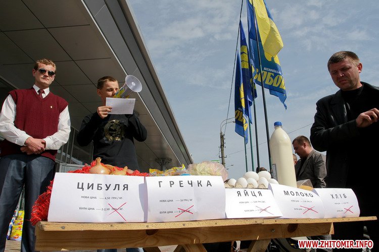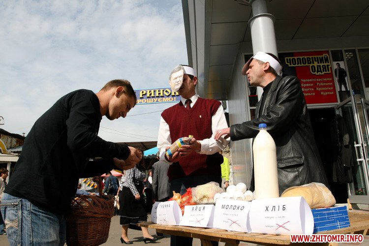 Акцію у театралізованій формі перед входом на центральний ринок провела житомирська «Свобода». За словами учасників акції, вони хотіли продемонструвати мешканцям Житомира, що ціни на продукти ростуть, як гриби після дощу.