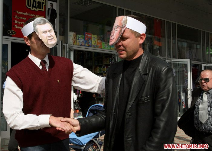 У Житомирі перед входом на «Житній ринок», президенту Януковичу дякували за підвищення цін на продукти.