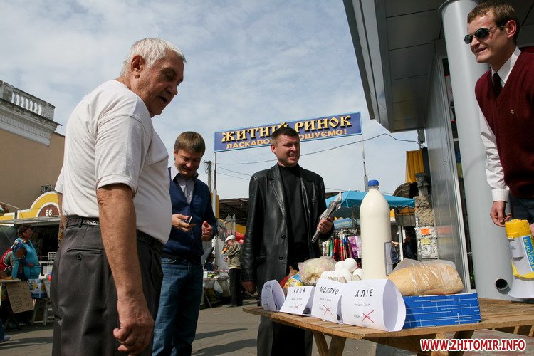 Акцію у театралізованій формі перед входом на центральний ринок провела житомирська «Свобода». За словами учасників акції, вони хотіли продемонструвати мешканцям Житомира, що ціни на продукти ростуть, як гриби після дощу.
