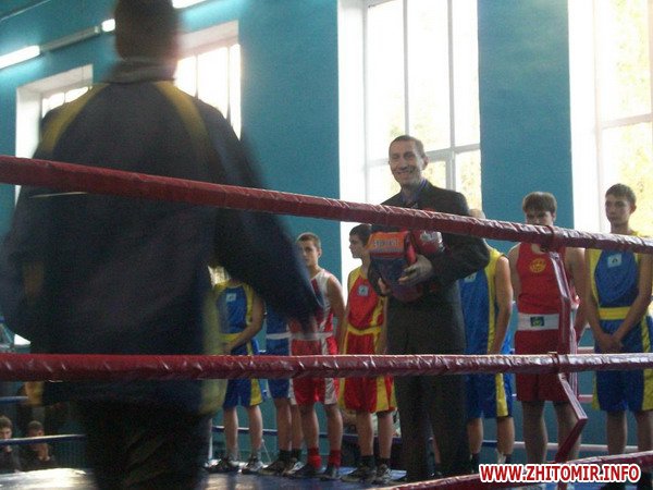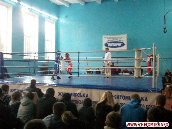 8 октября в спортивном клубе «Виктория» проходил открытый чемпионат Житомира по боксу. СК «Виктория» был открыт в 1996 году. Клуб дает возможность бесплатно заниматься детям боксом и в тренажерном зале. Выступали на соревнованиях 22 пары бойцов из 8 клубов области . На чемпионате присутствовало много зрителей, зал был переполнен. Безусловно, чемпионат вызвал большой интерес в мире бокса города Житомира. Поединки проходили в напряженной борьбе, спорсмены демонстрировали высокое мастерство и филигранную технику. Судейский состав показал объективность решений. На соревнованиях присутствовали начальник Управления по делам Молодежи и спорта города Житомира Сарно Елена Николаевна. Соревнования открыли член совета профессиональной лиги бокса Украины Комаренко Петр Васильевич – мастер спорта СССР. А также выступили председатель городской федерации бокса Оноприенко Владимир Васильевич , и представитель «четвертой власти»- известный журналист Форест Сергей Владимирович, который перед соревнованиями вручил несколько пар профессиональных боксерских перчаток результативным боксерам. Присутствовали представители тренерского состава Трофименко В.В, Тимошенко А.В, Скороход С.А, Щипец А.Д, Кирилюк В.В, другие почетные гости.