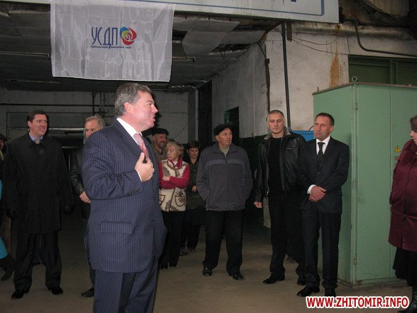 Лидер Украинской социал-демократической партии Евгений Корнийчук встретился с рабочими житомирского предприятия «Вибросепаратор». Приезд руководителя партии в Житомир – не случайность. Председатель правления предприятия Наталья Морванюк баллотируется в депутаты Житомирского облсовета по спискам этой политической силы. Есть у партии кандидатура на мэра - нынешний секретарь Житомирского горсовета Анатолий Каленский