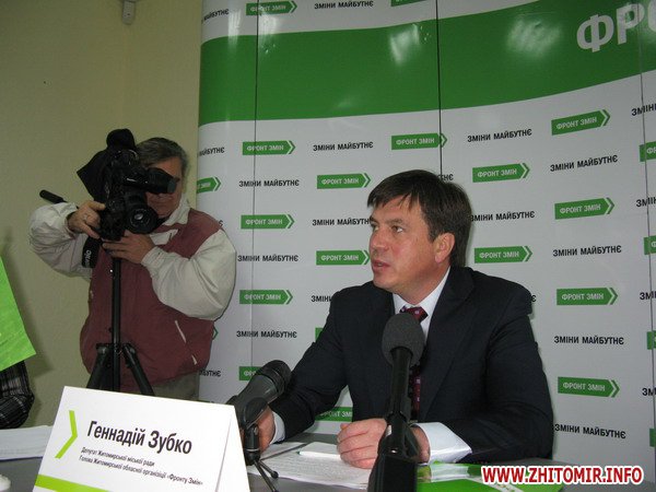 Про це на прес-конференції 13 жовтня повідомив лідер Житомирскої облорганізації «Фронту Змін» Геннадій Зубко.