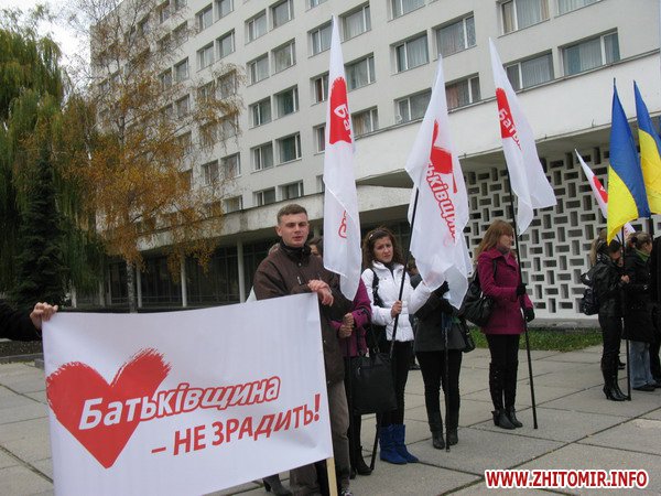 Лидер политической партии «Батькивщина» Юлия Тимошенко призвала жителей Житомира и области прийти на выборы и таким образом не дать властям фальсифицировать выборы.
