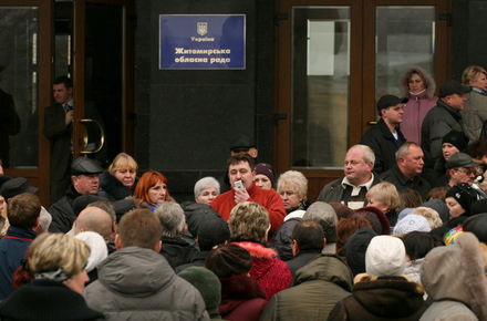 Под стены Житомирской госадминистрации с акцией протеста вышли несколько сотен предпринимателей Житомира. Протест проходил без политических лозунгов. Около начала одиннадцатого к протестующим вышли заместитель губернатора Игорь Орлов и заместитель мэра Николай Боровец. Они предложили предпринимателям выбрать инициативную группу и изложить свои требования. Николай Боровец напомнил предпринимателям, что Житомирский горсовет принял обращение к Президенту Виктору Януковичу с просьбой наложить вето на новый Налоговый кодекс.