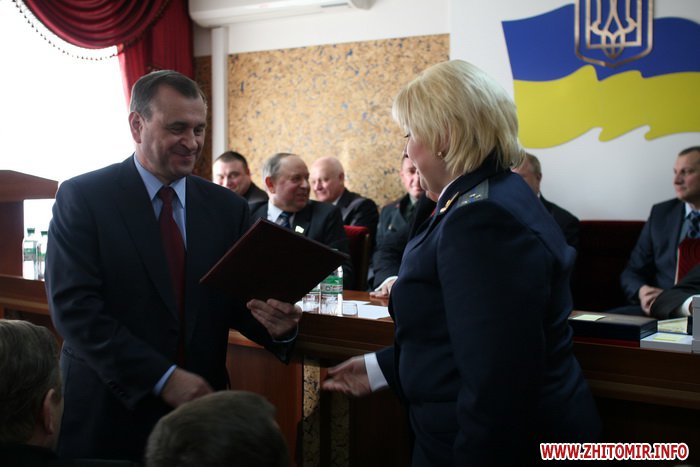 Працівників прокуратури в Житомирській області прийшли привітати керівники області та міста – губернатор Сергій Рижук, мер Володимир Дебой та голова облради Йосип Запаловський. На урочистості також запрошені були шановані представники інших структур.