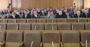Сессионный зал был наполовину пуст – депутаты от Партии регионов, коммунисты, социалисты и представители Народной партии Литвина проигнорировали инициативу 34 депутатов от БЮТ и «Нашей Украины», которые предлагали рассмотреть на внеочередной сессии вопросы возвращения в регламент облсовета поименного голосования, а также решить вопрос по областной территориальной избирательной комиссии, где, по словам руководителя фракции БЮТ Виталия Француза, сейчас работает 8 человек вместо 15.