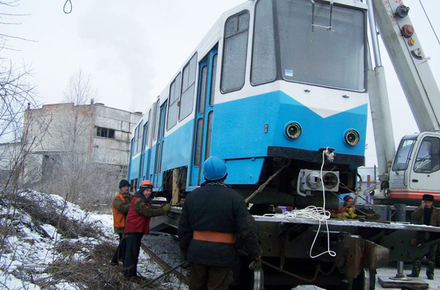 13 декабря работники Житомирского ТТУ разгрузили трамваи, прибывшие в город из Винницы.