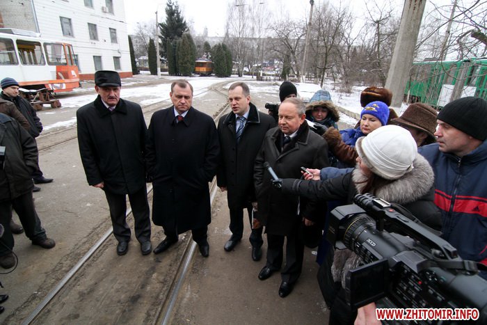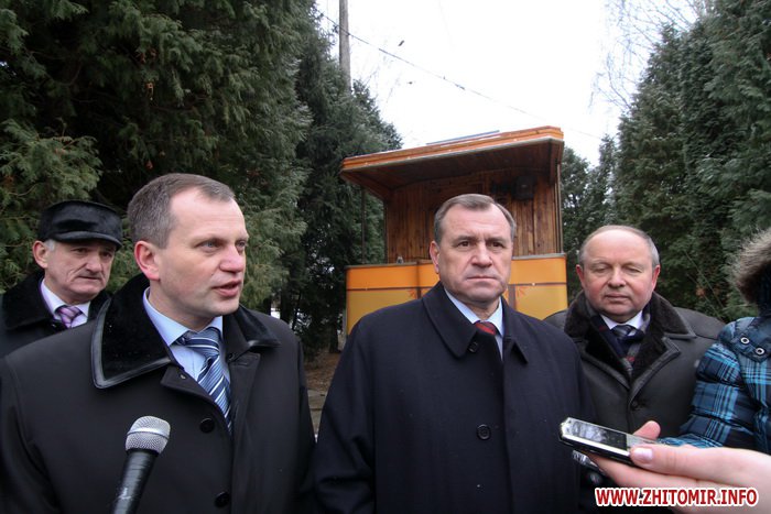 Трамваи представили руководители города и области: мэр Житомира Владимир Дебой, губернатор Житомирской области Сергей Рыжук и председатель Житомирского облсовета Иосиф Запаловский.