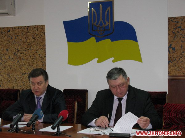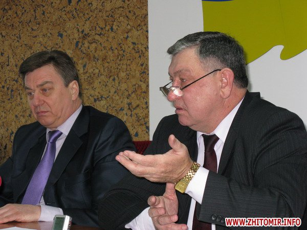 На фото: во время пресс-конференции слева - прокурор Житомирской области Николай Франтовский, справа - начальник УМВД Юрий Ивакин.
