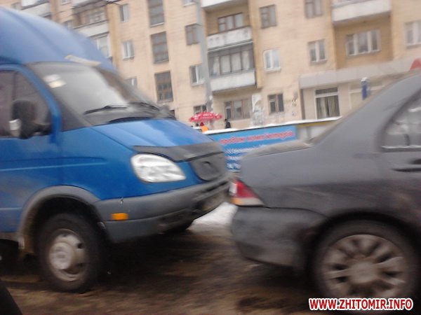Сегодня постоянному читателю Житомир.info удалось зафиксировать, на камеру мобильного телефона, столкновение пассажирской маршрутки и легкового автомобиля на перекрестке улиц Киевская – Восточная.