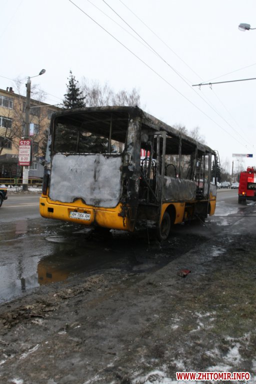 Как уточнили в пресс-службе ГУ МЧС в Житомирской области, водитель маршрутного такси №26 (мясокомбинат – Богуния) на остановке высадил пассажиров и, поскольку в салоне был слышен запах горелого, вышел из салона и открыл капот.