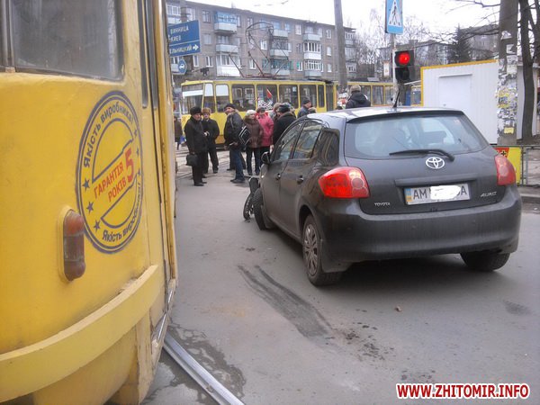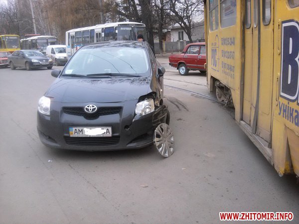 11 февраля около 14.00 в Житомире на углу улиц Котовского и Московской «не разминулись» трамвай и Тойота. После аварии движение трамваев было парализовано, а по улице Котовского образовалась автомобильная пробка. Свидетели утверждают, что при аварии люди не пострадали.