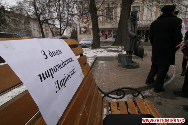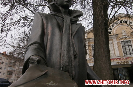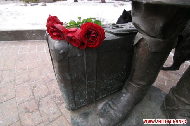 День рождения отмечали около памятника, который установили на средства житомирского предпринимателя Сергея Сухомлина 8 сентября 2007 года, в день города, перед входов в кинотеатр «Украина». Автор памятника - киевский скульптор Юлиан Осташев. На памятник потребовалось почти полтонны бронзы.