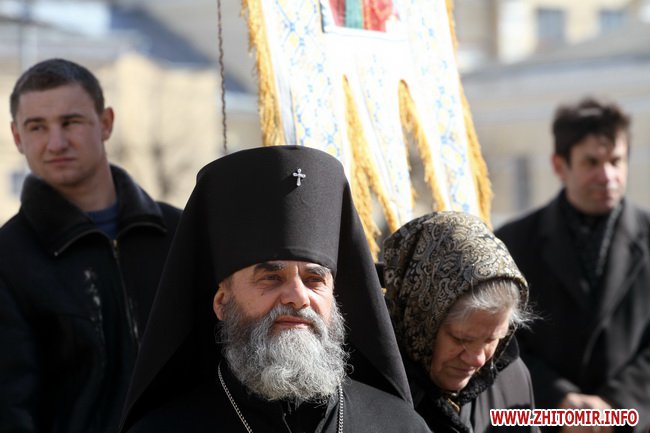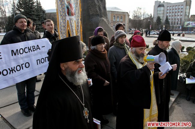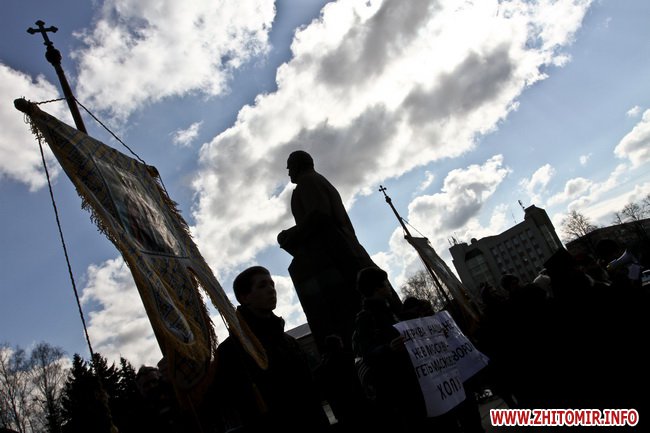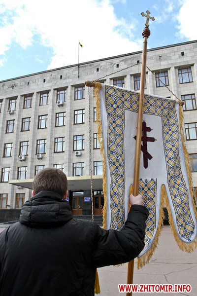 В Житомире 21 марта прихожане и священники Украинской православной церкви киевского патриархата провели молебен и митинг под стенам облгоадминистрации.