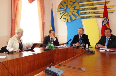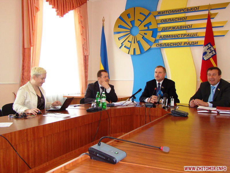 Журналістів запросили тільки на прес-конференцію, яку мав провести губернатор Житомирської області Сергій Рижук за підсумками колегії. Оскільки голову адміністрації терміново запросили в адміністрацію президента у Київ, захід провели перший заступник губернатора Житомирської області Микола Олещенко та заступник губернатора - керівник апарату обласної державної адміністрації Олександр Никитюк.