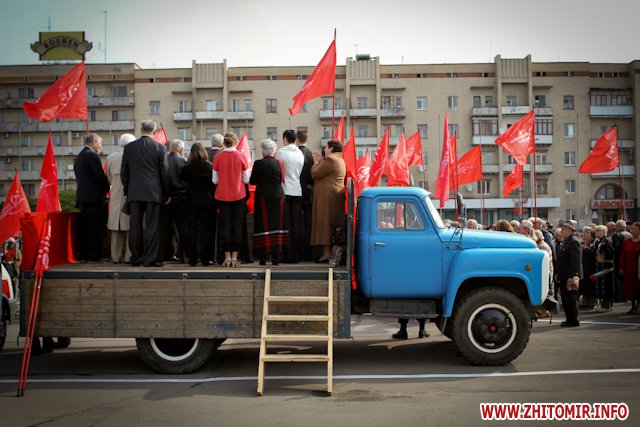 1 мая в Житомире на площади Соборной возле памятника В. Ленину, Компартия Украины и ее сторонники провели традиционный первомайский митинг посвященный дню солидарности трудящихся.