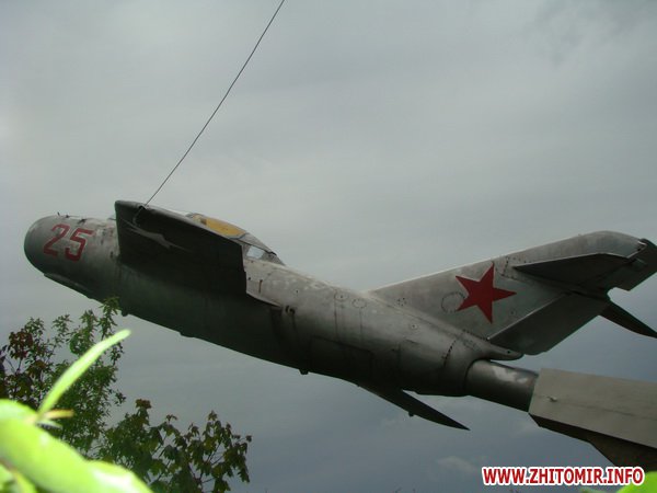 Николай Яковенко, который 1973-1987 годах был первым секретарем Житомирского горкома партии, рассказал, что идея установить именно такой героический знак принадлежит летчику-космонавту Георгию Береговому. Именно по его инициативе в сквере 30-летия Победы в честь погибших военных летчиков был установлен истребитель МИГ-15.