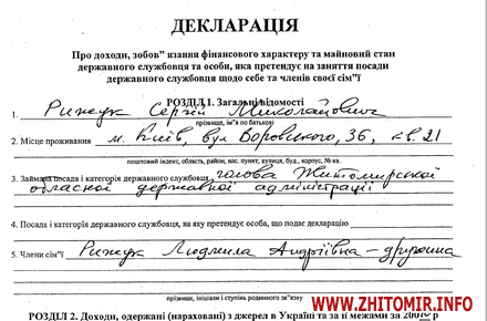 P.S. По информации начальника управления внутренней политики и связей с общественностью облгосадминистрации Ирины Басовой, в декларации губернатора Сергея Рыжука, опубликованной в данной новости, дата заполнения «14 квітня 2010 р.» – техническая ошибка.