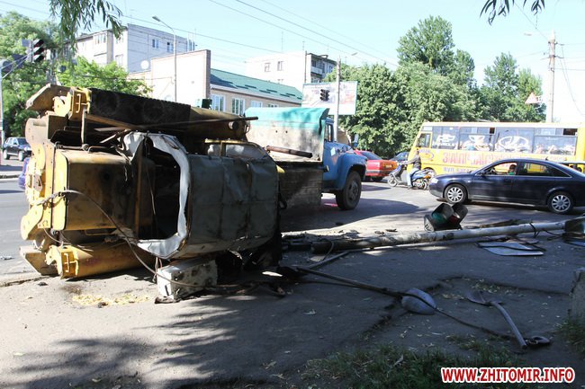 8 июня в центре Житомира на пешеходном переходе грузовой автомобиль «ЗИЛ» снес светофор.