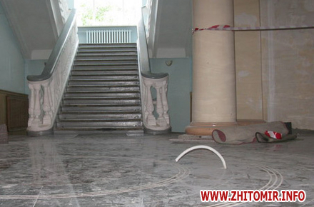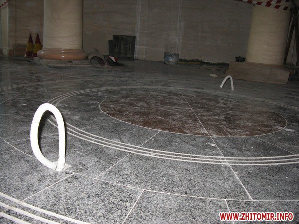 В мэрии Житомира продолжается ремонт. На первом этаже уже уложен пол из полированных гранитных плит. Знающие люди утверждают, под ними проведена система для установки турникета. Система якобы появится у центральной лестницы на второй этаж, где расположен кабинет житомирского градоначальника Владимира Дебоя.