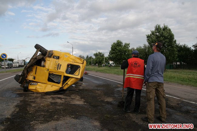 2009 год. На трассе Житомир-Киев фура столкнулась с маршруткой, которую от удара выкинуло на соседнюю полосу движения. К счастью внутри буса находился только водитель. Никто не пострадал.
