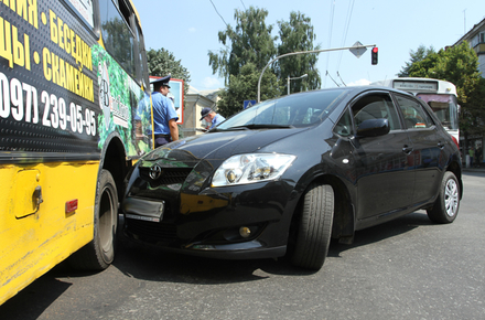 18 июля около полудня в центре Житомира столкнулись маршрутка (№2 с. Лісове-Полісся) и легковой автомобиль «Тойота».