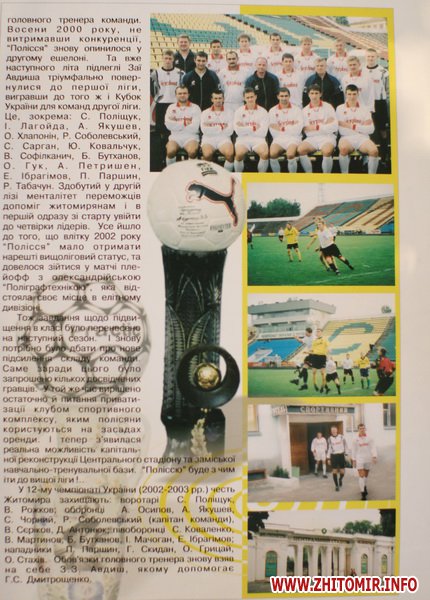 Еще год назад Зая Авдыш предлагал возродить, прекративший свое существование в 2005 году, клуб «Полесье». Для этого ему было необходимо арендовать стадион и привести его в порядок. В 2010 Авдышу удалось найти спонсора, который был готов вложить деньги в реконструкцию центрального стадиона в Житомире. В прошлом году готов был собрать команду и даже подыскал тренера – Анатолия Заяева, который согласился заняться «Полесьем». Тогда губернатор Рыжук пообещал Зае Авдышу решить все вопросы, но дальше обещаний дело не пошло…