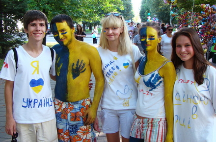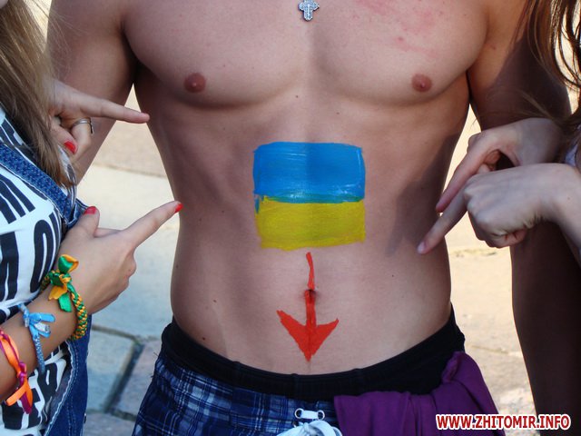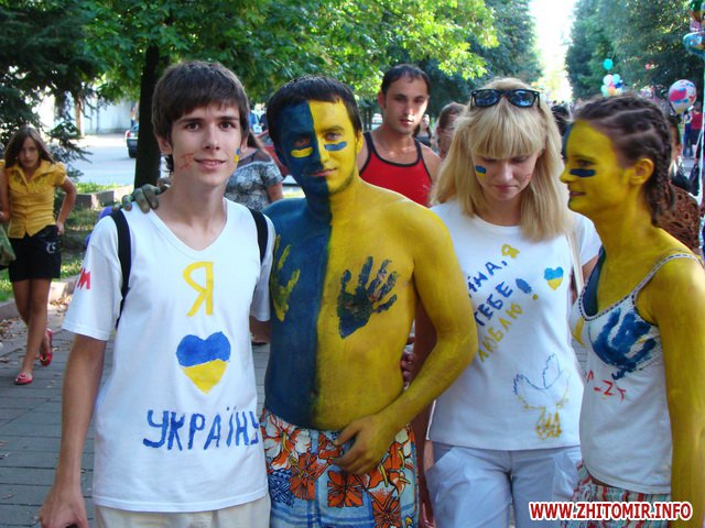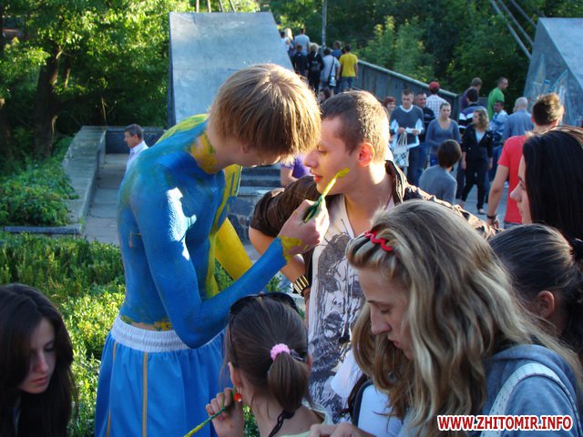На 20-у річницю Незалежності чимало хлопців та дівчат у Житомирі вбралися у вишиванки. Але головним трендом свята став синьо-жовтий боді-арт. Розмальовували обличчя, руки, плечі, животи, самовіддано псували фарбою футболки. Увечері деякі екстремали гордо крокували по Старому Бульвару з повністю розфарбованим голим торсом.