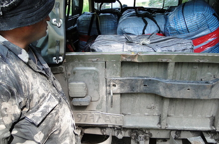 У ході проведених обшуків правоохоронці виявили насадження коноплі, яку зловмисник вирощував на присадибній ділянці у м.Овручі, плануючи її збут у Білорусії (де вартість канабісу вчетверо вища, ніж в Україні). На підпільному перевалочному складі, облаштованому ним на задньому дворі магазина-кафе в 2 кілометрах від КПП «Виступовичі», правоохоронці виявили велику кількість готових для переправлення запакованих тюків з товарами та адресами, кому саме їх слід доставити.