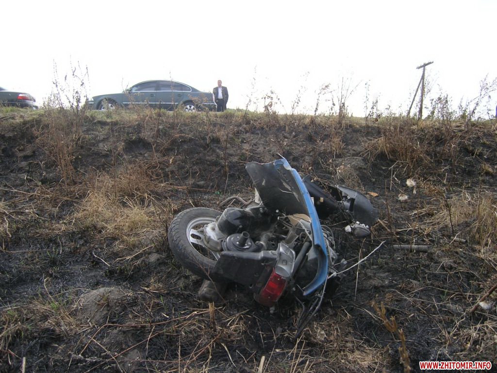 5 октября около 13.30 на 8 км автодороги Новоград-Волынский - Староконстантинов, Новоград-Волынского района, водитель автомобиля Шевроле Авео, 30-летний житель Барановского района, двигаясь в направлении г. Барановка, совершил столкновение с мотороллером Хонда, под управлением 27-летней жительницы Новоград-Волынского района.