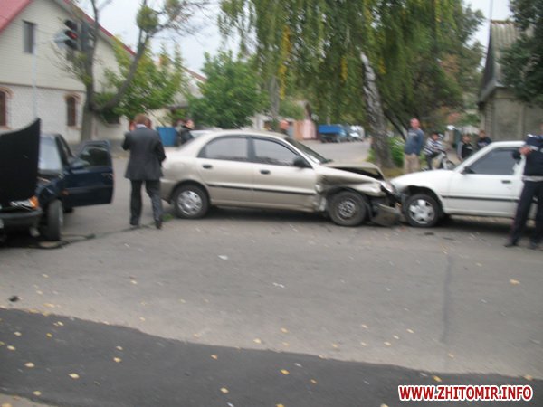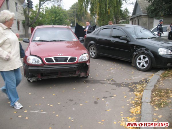 8 октября около 12:30 в Житомире на перекрестке улиц Леваневского и Шелушкова столкнулись автомобили «Sens» и «Chevrolet Lacetti». Повреждения были незначительны и водители решили оформить ДТП без обращения к сотрудникам ГАИ. На дороге установили предупреждающий знак и начали проводить самостоятельную оценку повреждений машин.